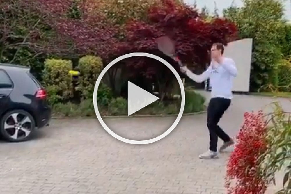 He wrote: "Hit some forehands and backhands for the first time in 7 weeks today... it didn't end well... #neighboursgarden"