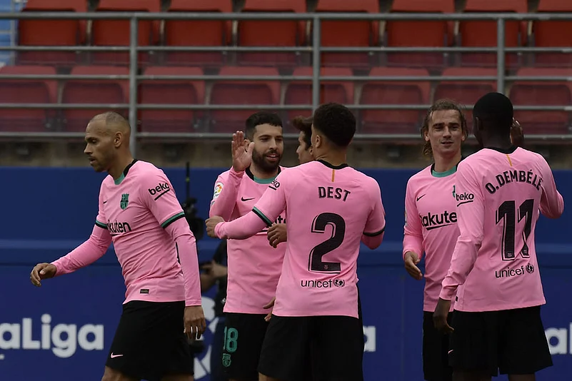 Barca have now scored in each of their 14 league games with Eibar but only tested Yoel Rodriguez once in the first half through a hopeful long-ranger from Oscar Mingueza.