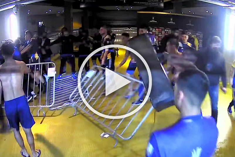The fight erupted as players from Boca Juniors returned to the locker room. Video footage showed members of the team throwing punches and objects at security personnel. The team apparently was infuriated by a goal that had been disallowed by a video review offside call.