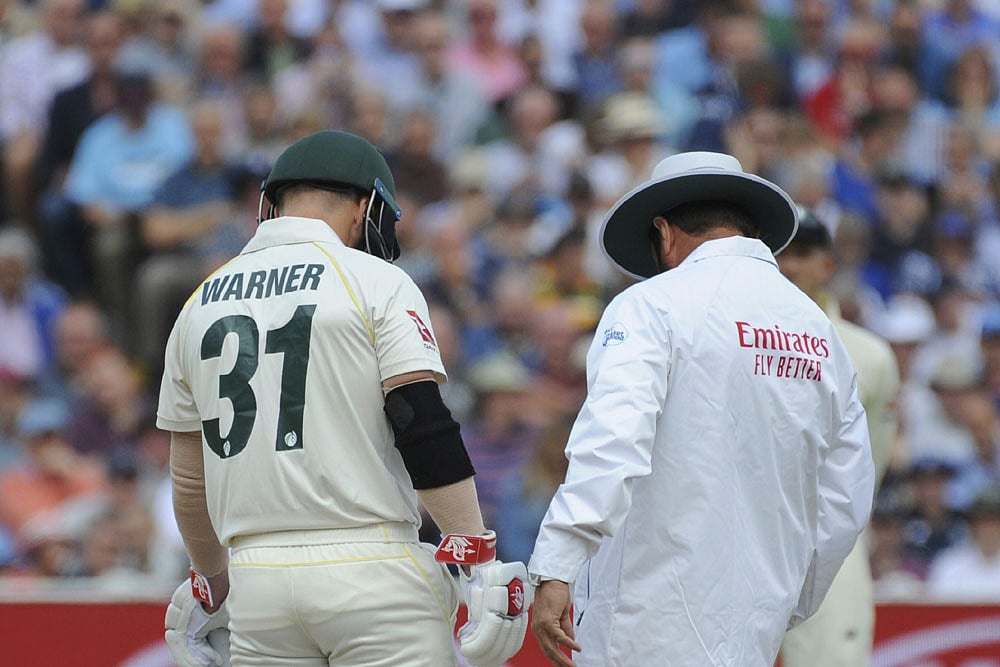 Opting to bat first, Australia were given early favour, as early as the second over, Stuart Broad was denied the wicket of David Warner, who's making a Test comeback after serving a year-long ban, with Pakistani umpire Aleem Dar failing to pick a bottom edge.