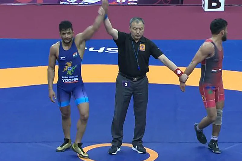 Gyanender, however, lost 0-6 in the 60kg Greco-Roman bronze medal bout on Wednesday. The gold was won by Kenichiro Fumita of Japan, who beat Kyrgyzstan's Zholaman Sharshenkov 4-0.
