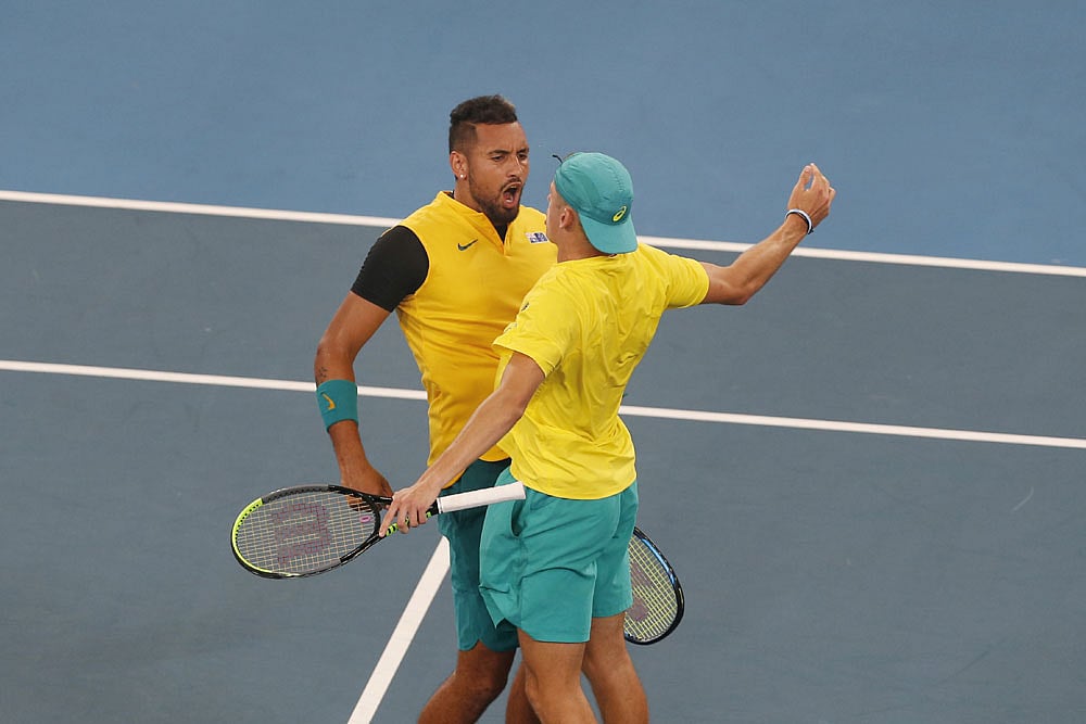 De Minaur and Kyrgios saved four match points before beating Jamie Murray and Joe Salisbury 3-6 6-3 18-16 in Sydney to seal a 2-1 victory for the hosts.