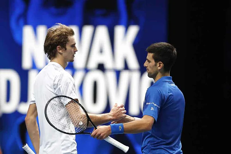 The 33-year-old Serbian, who won the ATP Finals in 2008, 2012, 2013, 2014, 2015, will play Dominic Thiem in his semi-final on Saturday with Rafael Nadal taking on Daniil Medvedev in the other match.