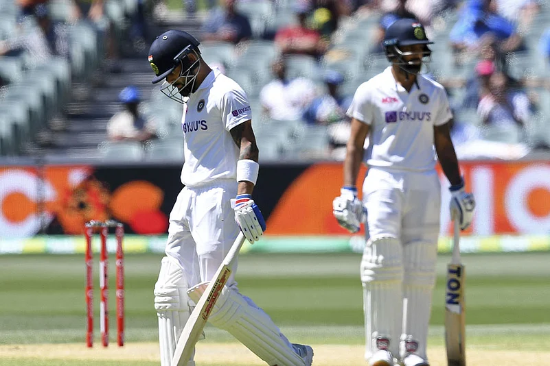 Australia pacers left India in tatters on Day 3 of the first Test at Adelaide with Pat Cummins taking four wickets in no time. When Cummins had Virat Kohli caught by debutant Cameron Green in the 14th over, India were tottering at 19/6.