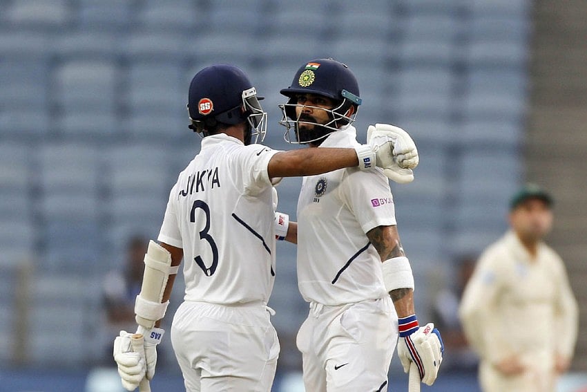 Virat Kohli congratulated Ajinkya Rahane after the stand-in India skipper scored an unbeaten century on day two of the Boxing Day Test with Australia in Melbourne.