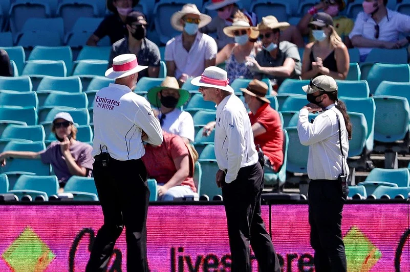 During the second session of the fourth day on Sunday, India players huddled in the centre after Siraj, standing at the square leg boundary, complained of abuse after being hit for two consecutive sixes by Cameron Green in his over.