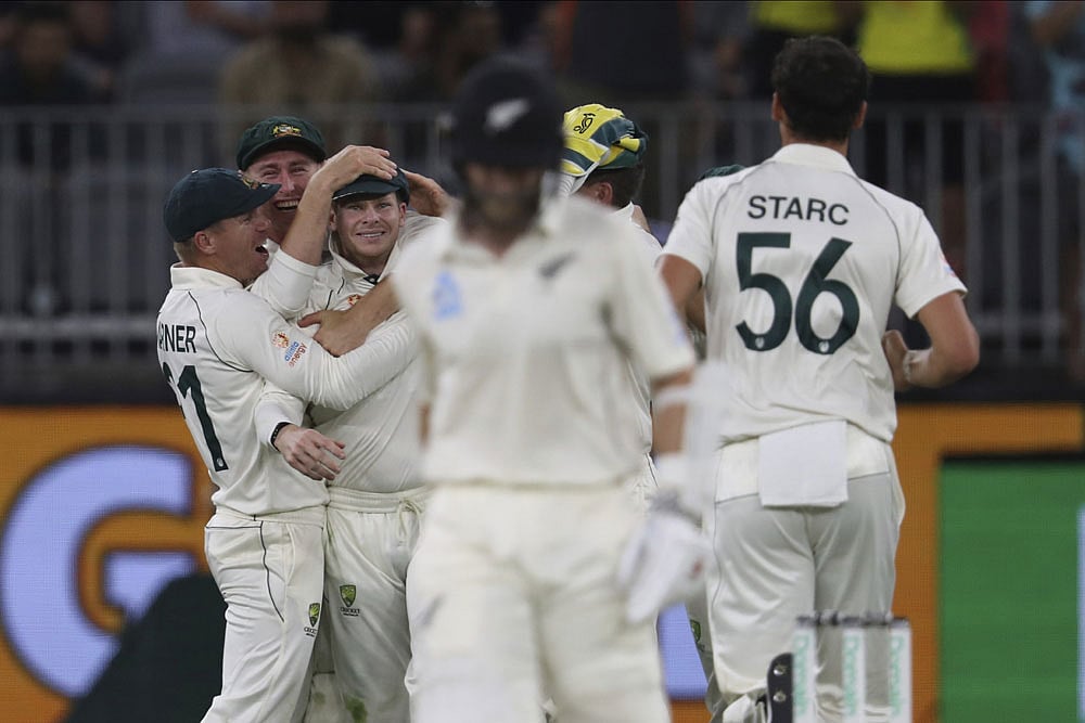 Mitchell Starc put Australia in command in the absence of Josh Hazlewood while Steve Smith took a sensational catch to leave New Zealand in big trouble on day two of the first Test. (More Cricket News)