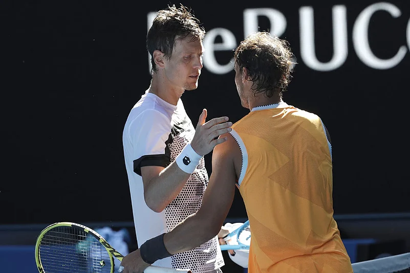 Nadal, 32, dominated his Czech rival by winning the first nine straight games and continued to keep his foot on the former world number four's throat to win in two hours and five minutes on Rod Laver Arena.