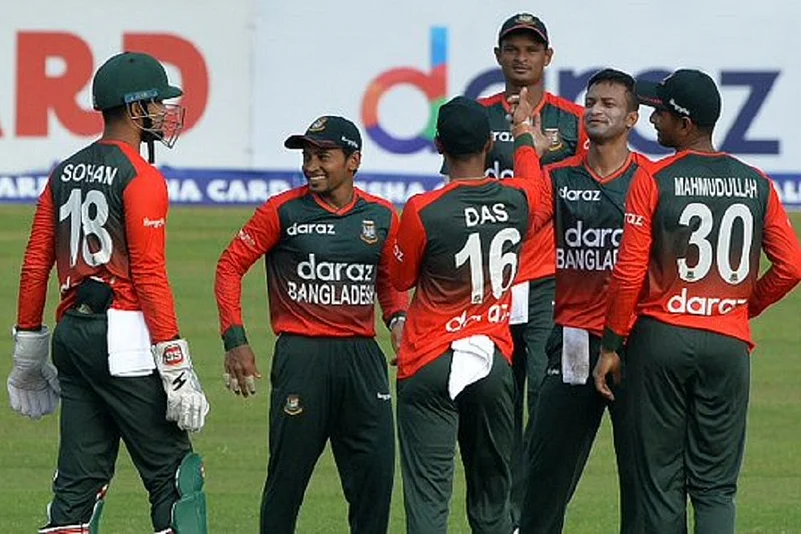 Left-arm spinners Shakib Al Hasan, Nasum Ahmed and pacer Saifuddin claimed two wickets apiece while offspinner Mahedi Hasan took one.