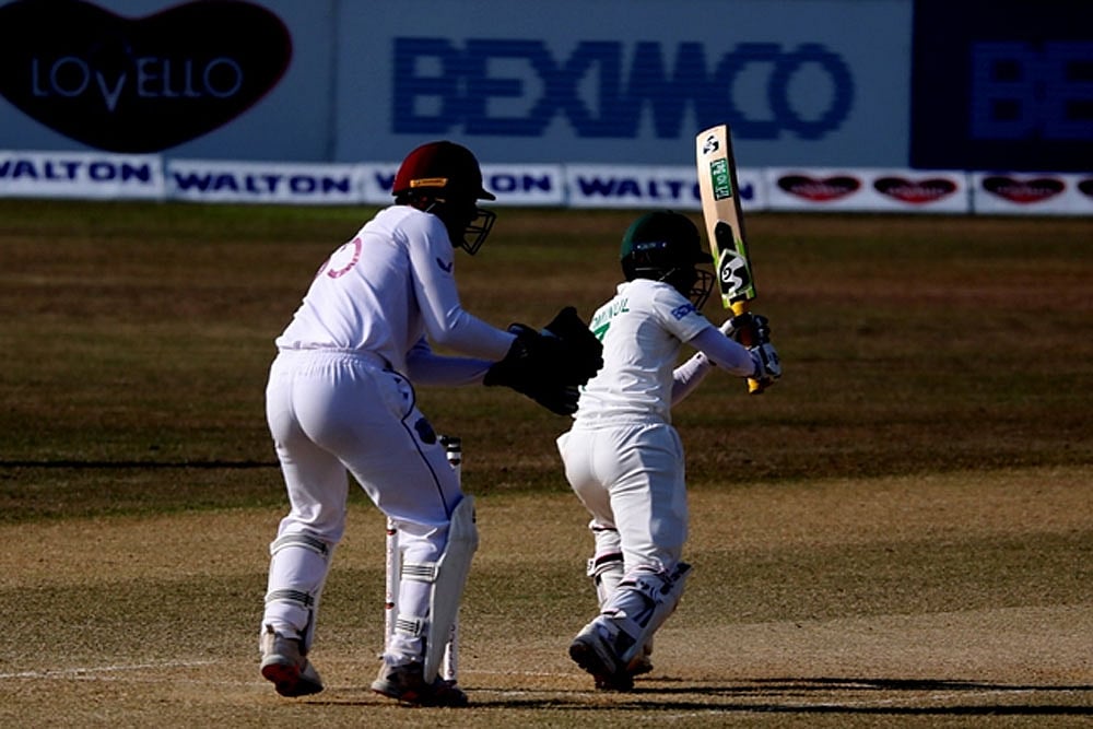 Fast bowler Shannon Gabriel claimed opener Shadman Islam (5) with a short-pitched delivery.