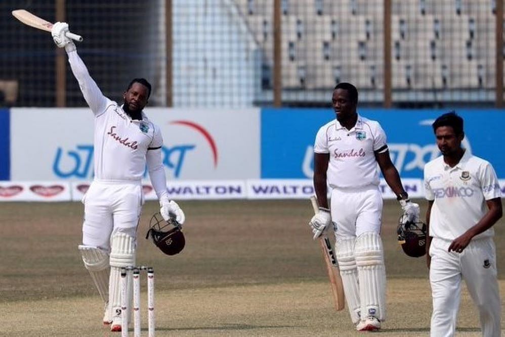 At tea on Sunday, West Indies were 266-3, still needing 129 runs from a minimum of 34 overs to win after Bangladesh set a 395-run target.