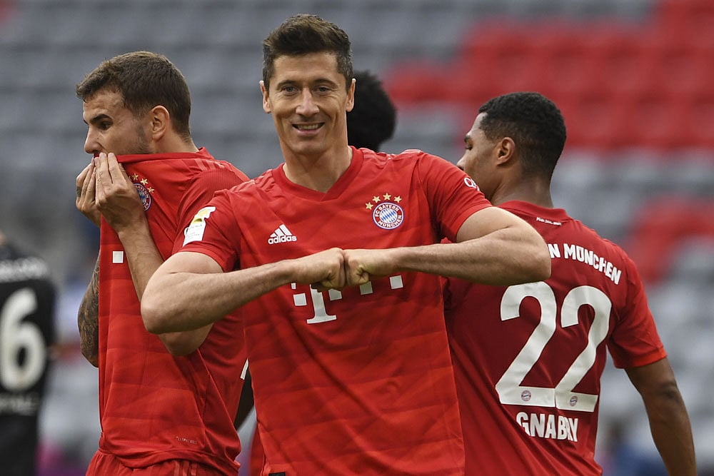 Lewandowski doubled his tally by instinctively using his trailing leg to steer Gnabry's driven cross home between the legs of Kastenmeier.
