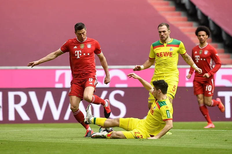 Lewandowski's first goal helped Bayern ease into a 2-0 half-time lead and while Cologne briefly threatened a comeback, the returning Thomas Muller made an immediate impression off the bench, providing the assist that allowed the competition's leading scorer to take his tally for the campaign to 28.