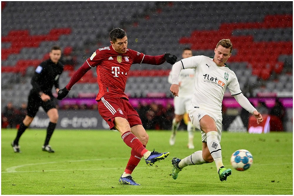 Robert Lewandowski got Bayern off to good start with his 20th league goal, but Gladbach answered with two goals in four minutes through Florian Neuhaus and Stefan Lainer and held on for the win. Gladbach also won their previous meeting — 5-0 in the German Cup in October.