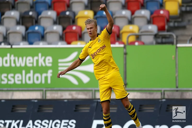 Bayern Munich's Bundesliga title celebrations were put on ice after Erling Haaland scored in the fifth minute of injury time for Borussia Dortmund to beat Fortuna Düsseldorf 1-0 on Saturday.