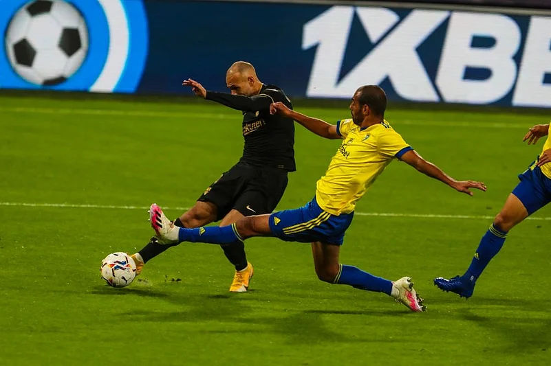 Barca appealed in vain for a foul but responded strongly and Lionel Messi started to pull the strings. He set in motion a move that saw Philippe Coutinho fire over from an acute angle, before feeding Martin Braithwaite for a low shot that was diverted away by the boot of goalkeeper Jeremias Ledesma.