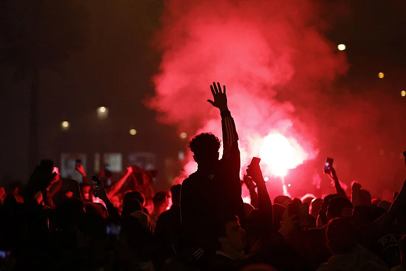 Riot police used tear gas to disperse fans gathered outside the club's stadium. PSG beamed the match on two giant screens at Parc des Princes, with 5,000 fans allowed inside in keeping with the maximum allowed for soccer games in France as part of virus protection measures.
