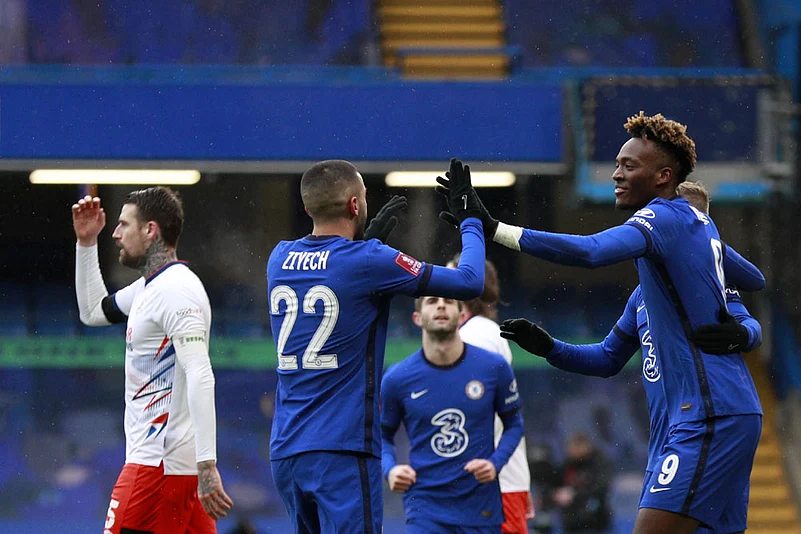 Abraham got them both, the striker sweeping in from Werner's deflected cross before he met a right-wing Reece James delivery to head home his second.