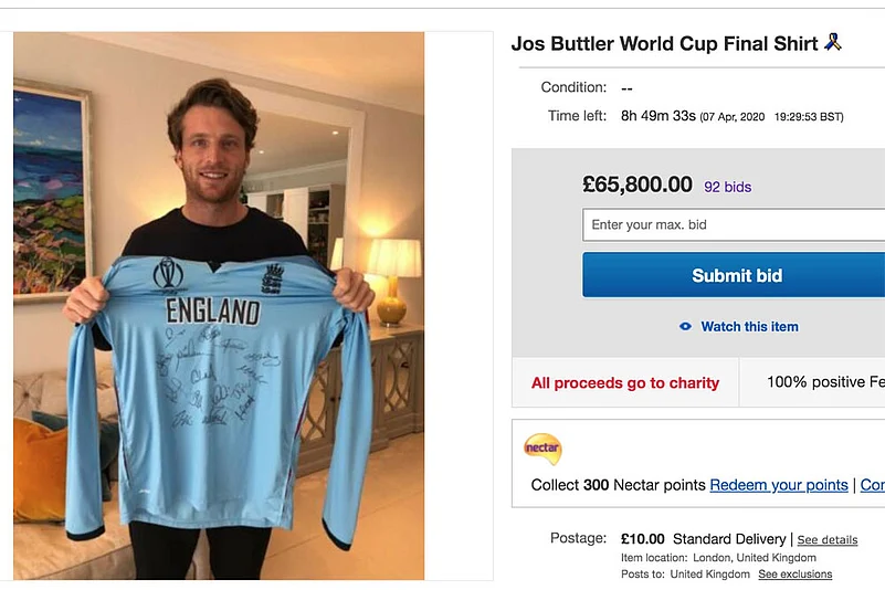 The auction of Jos Buttler's jersey from England's 2019 Cricket World Cup final victory has raised over £65,000 for charity.