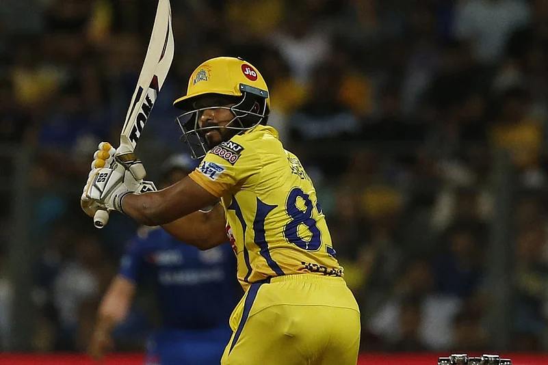 Chennai Super Kings' Kedar Jadhav bats during the VIVO IPL T20 cricket match between Mumbai Indians and Chennai Super Kings in Mumbai, India, Wednesday, April 3, 2019. (AP Photo/Rafiq Maqbool)