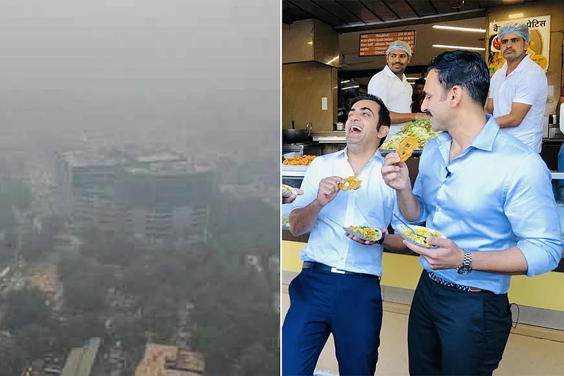 "Delhi is choking and Gambhir is busy enjoying in Indore," AAP said.