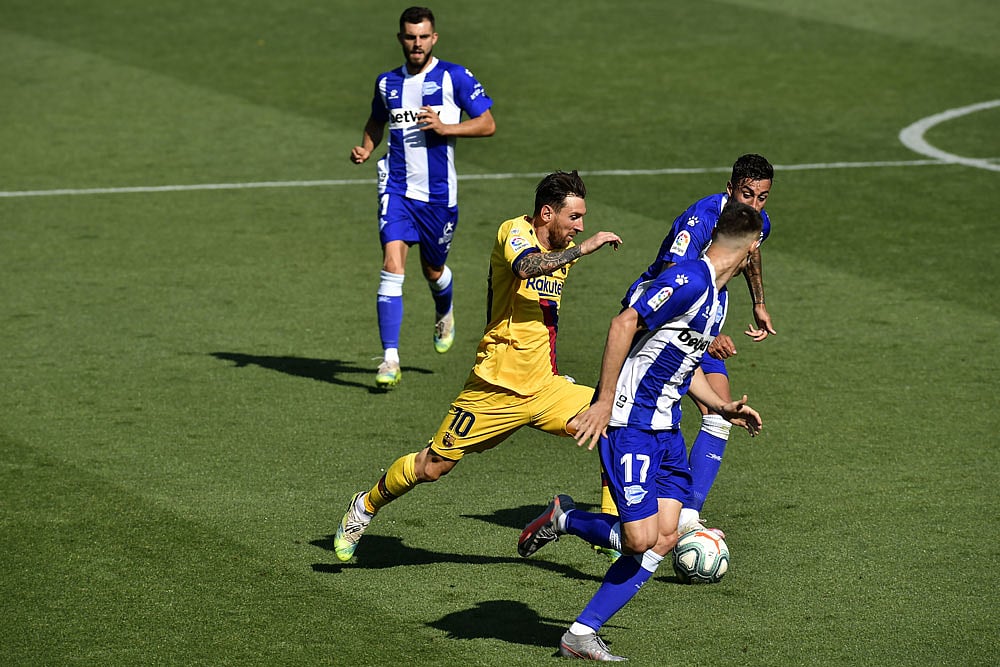 The visitors had already hit the Alaves goal frame three times, through Riqui Puig, Arturo Vidal and Messi, before they took a 24th-minute lead through Fati.
