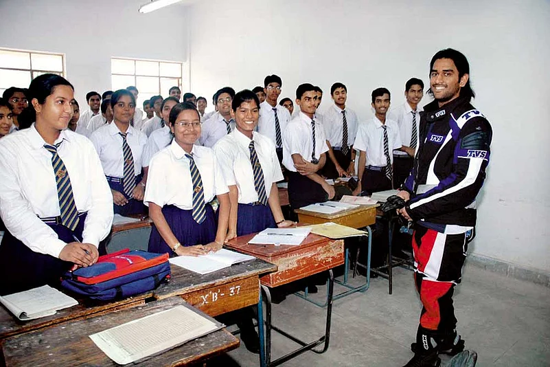 The MSD story began in the unassuming Ranchi colony of MECON, a public sector undertaking, where Dhoni’s father worked. He attended the DAV School in Shyamali, which shared the boundary wall with the MECON Stadium. Dhoni’s first love was football, where a dive as goalkeeper caught the eye of Keshab Ranjan Banerjee, the multi-sport coach, and the seeds of a great career were sown. “I saw he had no fear and he was not scared. He has had tough days at the beginning, but didn’t go astray. His simplicity was a big factor in his rise,” Banerjee tells Outlook.