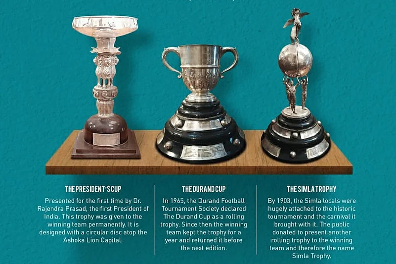 The Durand Cup is unique in the sense the winners are awarded three trophies with two rolling ones (the Durand Cup and the Shimla Trophy) and the President’s Cup for permanent keeping.