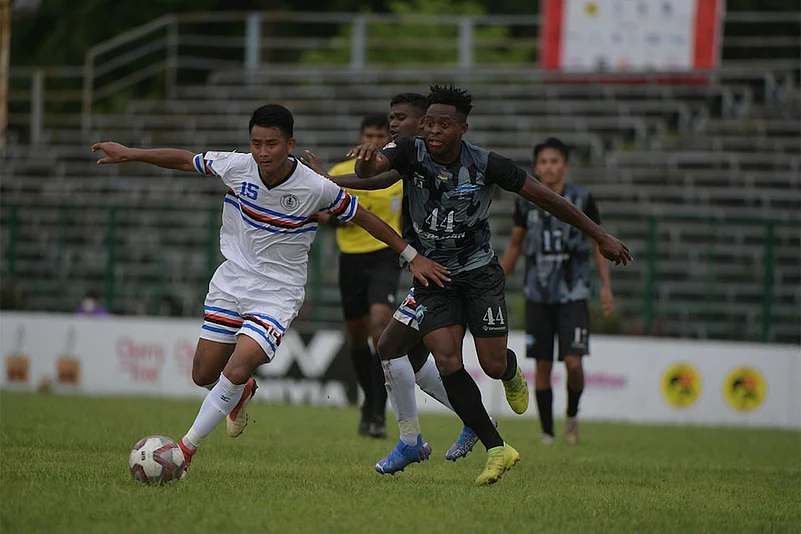 Plaza got at the end of a floating ball inside the box after an attacking move by Reinreithan Shaiza and Dawda Cessay in the 21st minute to drive it past the Navy keeper Bhaskar Roy.