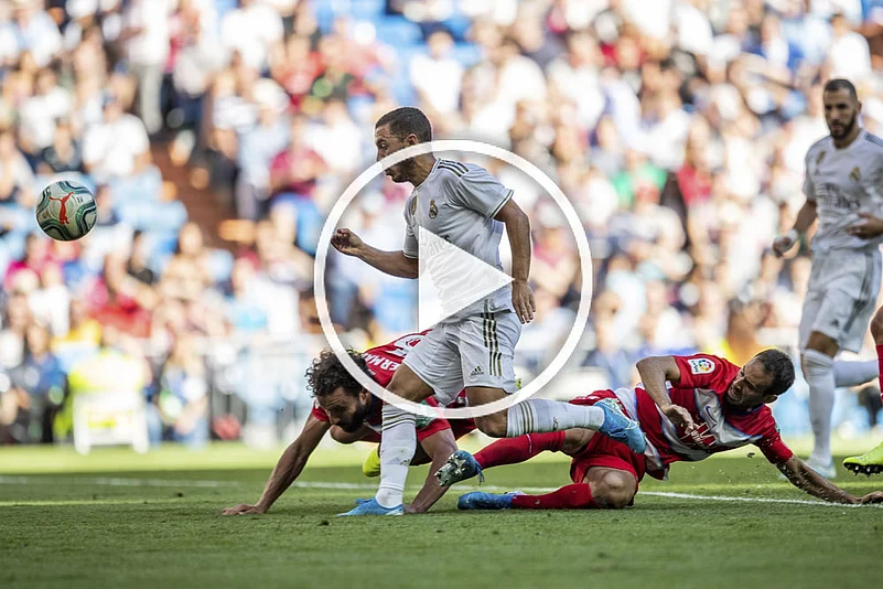 Granada were unable to clear under pressure and Federico Valverde poked the ball through for Hazard, who kept his cool and lifted the ball over the head of goalkeeper Rui Silva.