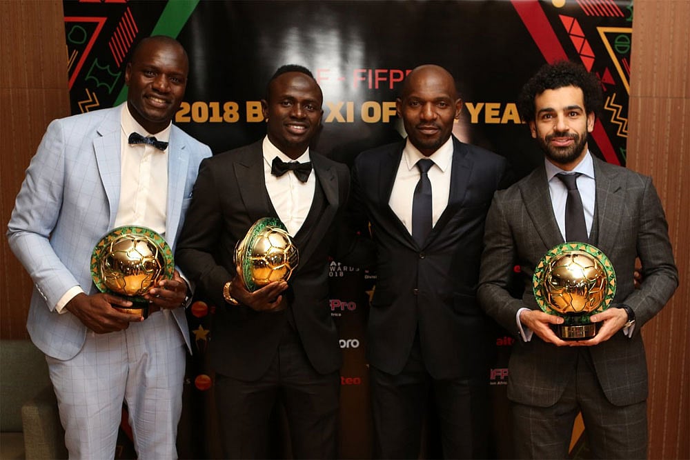 Africa Best XI: Denis Onyango (Mamelodi Sundowns/Uganda), Serge Aurier (Tottenham/Ivory Coast), Medhi Benatia (Juventus/Morocco), Eric Bailly (Manchester United/Ivory Coast), Kalidou Koulibaly (Napoli/Senegal); Naby Keita (Liverpool/Guinea), Thomas Partey (Atletico Madrid/Ghana), Riyad Mahrez (Manchester City/Algeria); Mohamed Salah (Liverpool/Egypt), Pierre-Emerick Aubameyang (Arsenal/Gabon), Sadio Mane (Liverpool/Senegal)