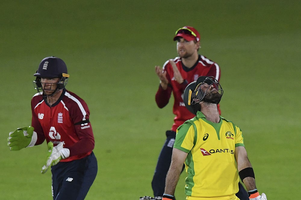 Australia's fielders continued to capitalise on the good work of their bowlers as Eoin Morgan and Moeen Ali were each then caught off Maxwell (2-14), England struggling from 64-1 to 108-5.