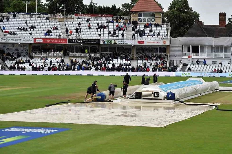 Only 250 plus overs out of a maximum 450 were possible due to the inclement weather as India, chasing a target of 209, were well-placed at 52 for 1 in 14 overs at the end of fourth day.