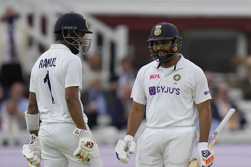 Put into bat at the Lord's, the Indian opening pair of K L Rahul (10 batting off 46 balls) and Rohit (35 off 66 balls) did well enough to blunt the English attack during the 18.4 overs of play that was possible during the session.
