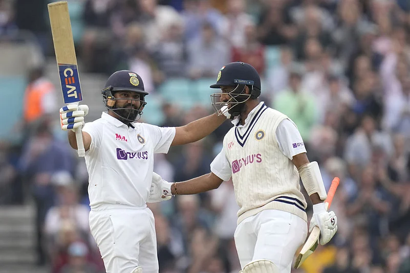 While Rohit misjudged a slower delivery as he couldn't keep his pull shot down, Robinson bowled an in-cutter that took the inside edge off Pujara's bat into the pads and flew towards slip for an easy catch.