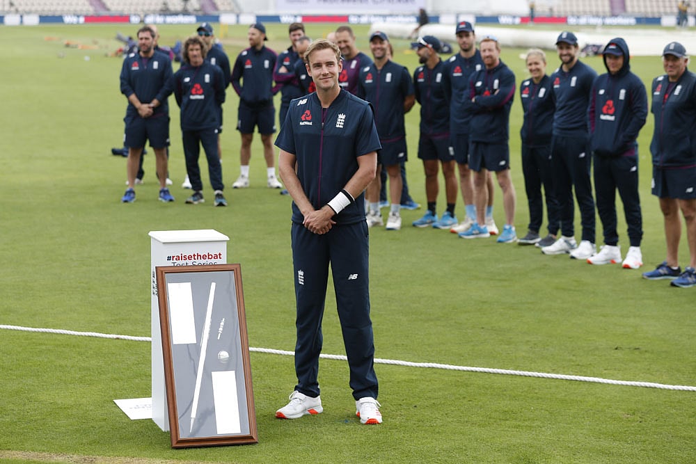 Before the toss, the ECB gave Stuart Broad a commemorative a silver stump for reaching the milestone of 500 Tests wickets.