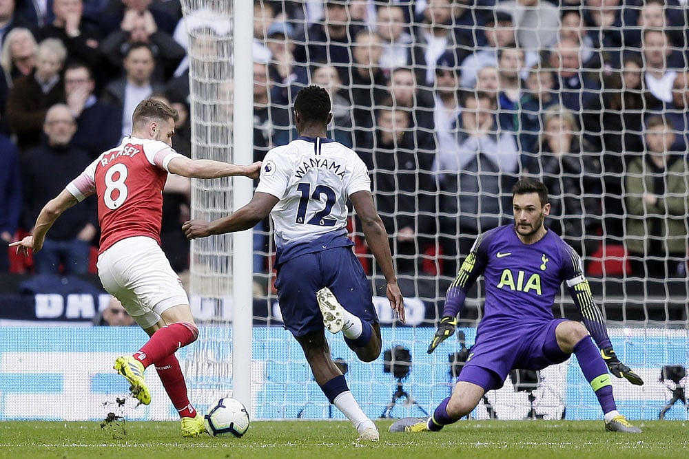 Davinson Sanchez misjudged his header from a long ball forward and with one touch Lacazette sent Ramsey in the clear.