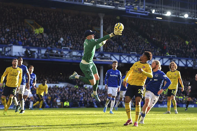 Jordan Pickford made an unconventional save to keep out Aubameyang's close-range shot after the restart, the striker then sending a tame effort at the goalkeeper.