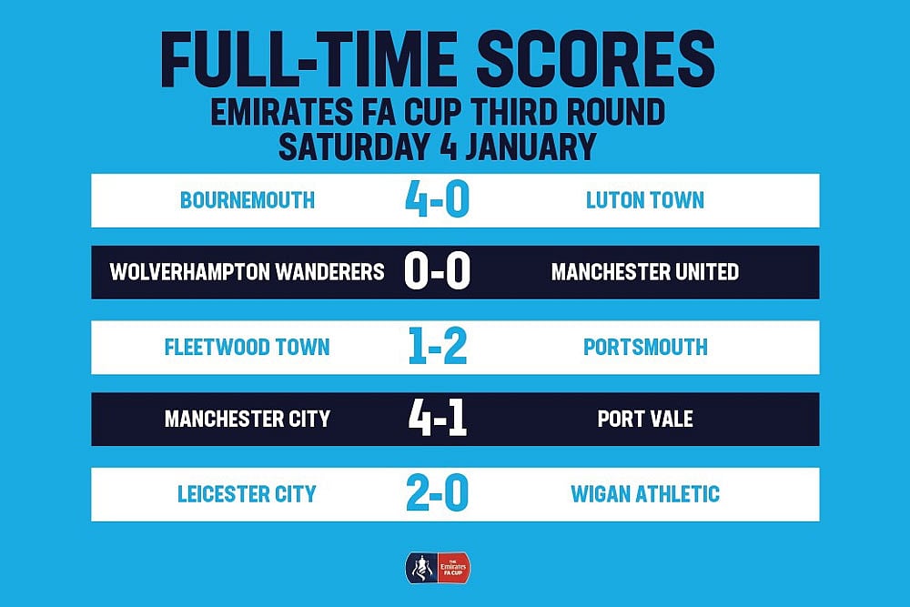 Spluttering Manchester United were forced to settle for a dour 0-0 draw at Wolves in the FA Cup third round, while holders Manchester City started their bid to retain the trophy with a 4-1 victory against Port Vale. (More Football News)