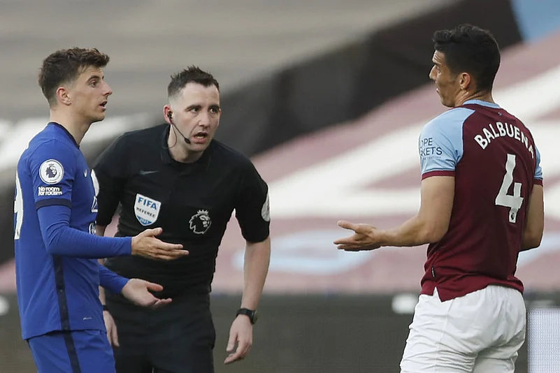Referee Chris Kavanagh initially booked Balbuena but, after consultation with the VAR, went over to assess the incident on the pitchside monitor and subsequently changed his decision to a straight red card – a call that infuriated Hammers boss David Moyes.
