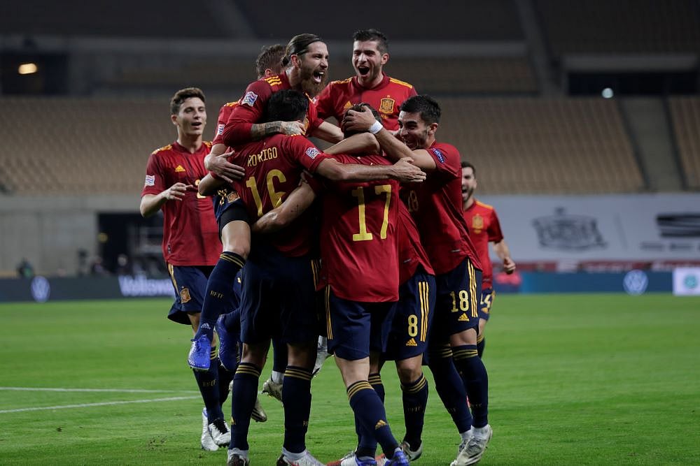 Alvaro Morata headed in a Fabian Ruiz corner for the opener before Torres volleyed in their second and Rodri nodded in a third.