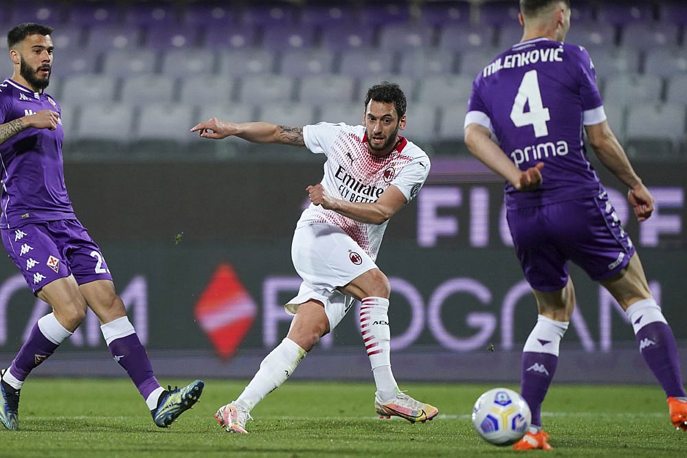 Milan kept alive their faint hopes of Serie A title glory as Hakan Calhanoglu's fine strike sealed a pulsating 3-2 win over Fiorentina on Sunday. (More Football News)