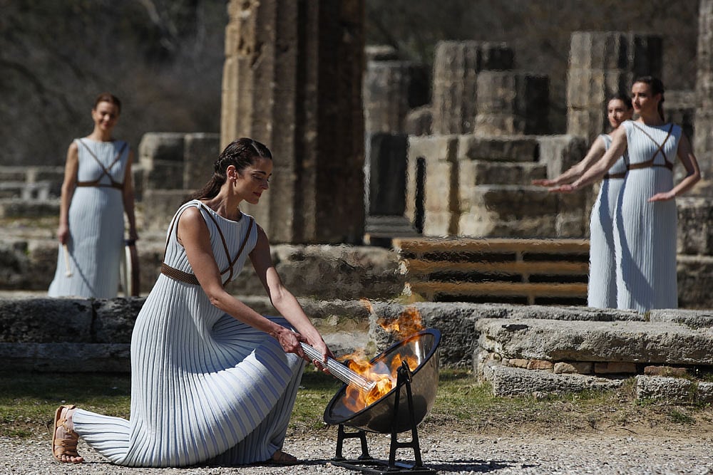 With spectators banned, an actress dressed as an ancient Greek high priestess lit the flame using the rays of the sun reflected off a concave mirror, launching a week-long torch relay in Greece before the flame is handed to Tokyo organisers on March 19.