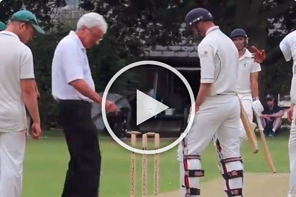 In a video shared by Sanderstead CC, which has since gone viral, a batsman survives despite the ball hitting the stumps. The bowler did manage to dislodge one of the bails off the groove, but to his and the fielding team's chagrin, the bail remained balance on top of the off-stump.