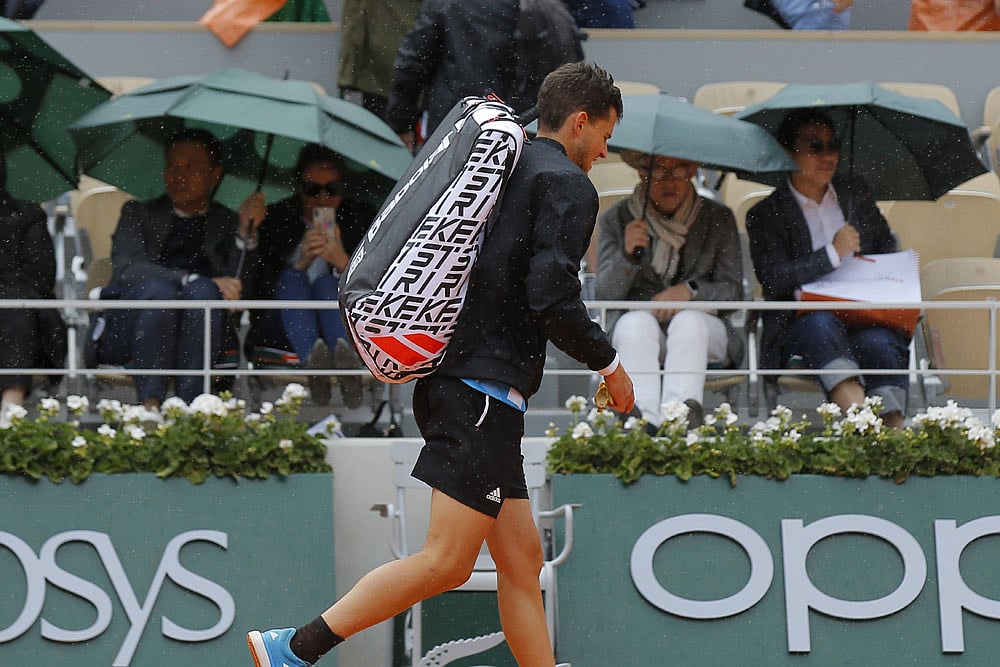 Last year's runner-up Thiem had just gone a break up at 3-1 in the third set when the players went off with rain lashing down and they were unable to return.