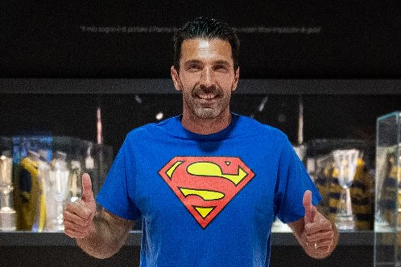 Parma posted a playful video on social media of Buffon digging up his old Parma shirt and a Superman outfit in one of the goals at Ennio Tardini stadium.