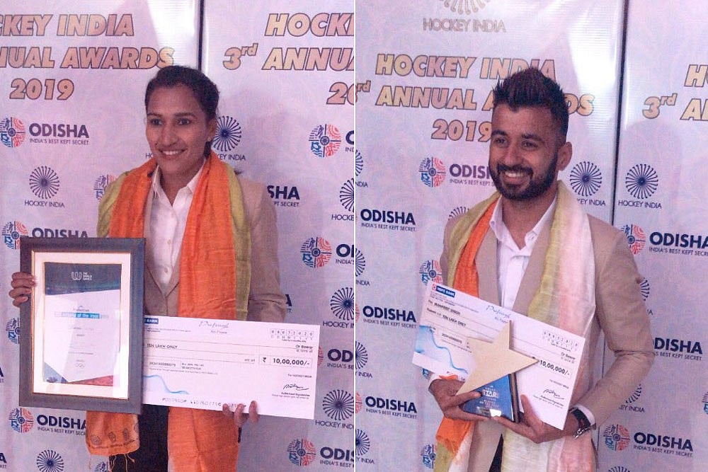 National team captains Manpreet Singh and Rani Rampal on Sunday won the Dhruv Batra Player of the Year Award 2019 in the men's and women's categories respectively at the third Hockey India Annual Awards at Delhi. (More Hockey News)
