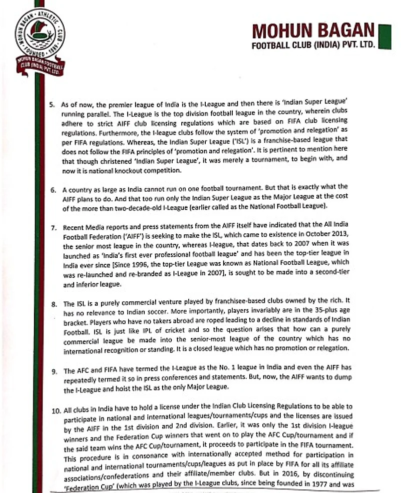 "Recent media reports and press statements from the AIFF itself have indicated that the AIFF is seeking to make the ISL, which came into existence in 2013, the senior most league in the country, whereas I-League, that dates back to 2007 when it was launched as India's first ever professional football league is sought to be made into a second tier and inferior league," the clubs wrote in the letter.