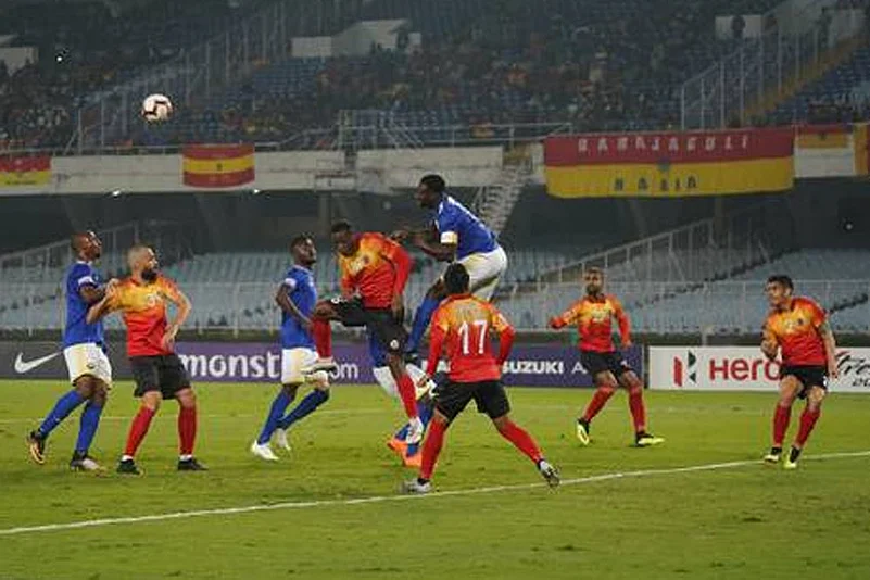 East Bengal's leading scorer Justin curled in a cross from the right flank to set up Jaime Colado at the edge of the box but the Spaniard's shot went over the bar early on.