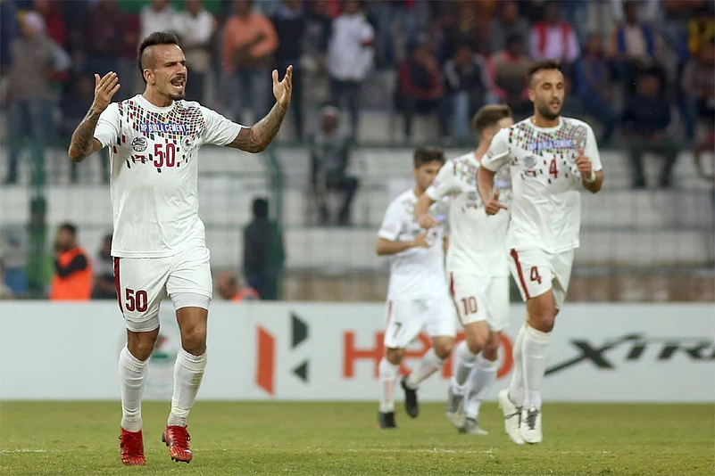Bagan responded immediately with Gonzalez’s hattrick. It was all confusion in the NEROCA defence from another Beitia cross and it was left to Gonzalez for a simple tap in from close as the stray ball fell to him.